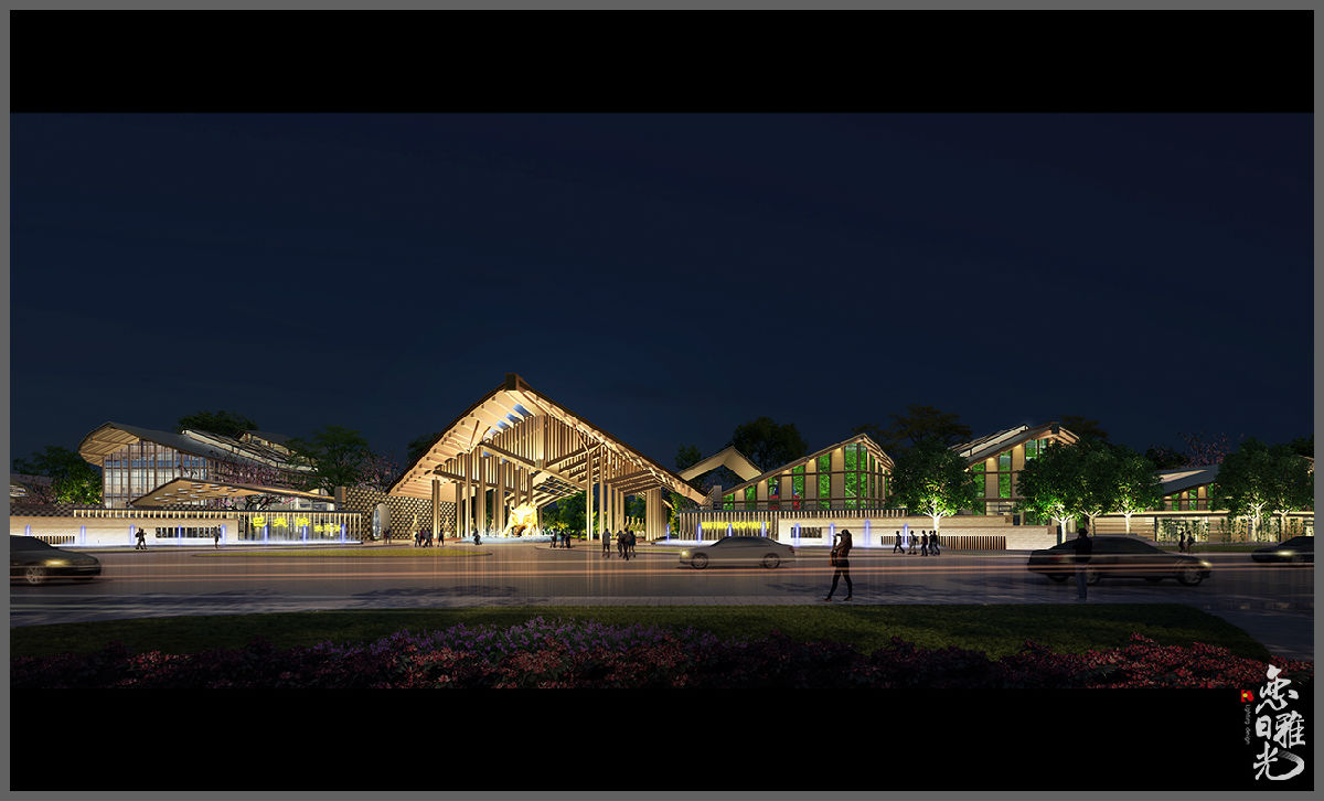 修飾,配合投影展現(xiàn)溫馨、活躍的氛圍。景觀部分采用RGB的燈具,燈光融入景觀,構(gòu)成一幅欣欣向榮的生態(tài)田園風(fēng)光。